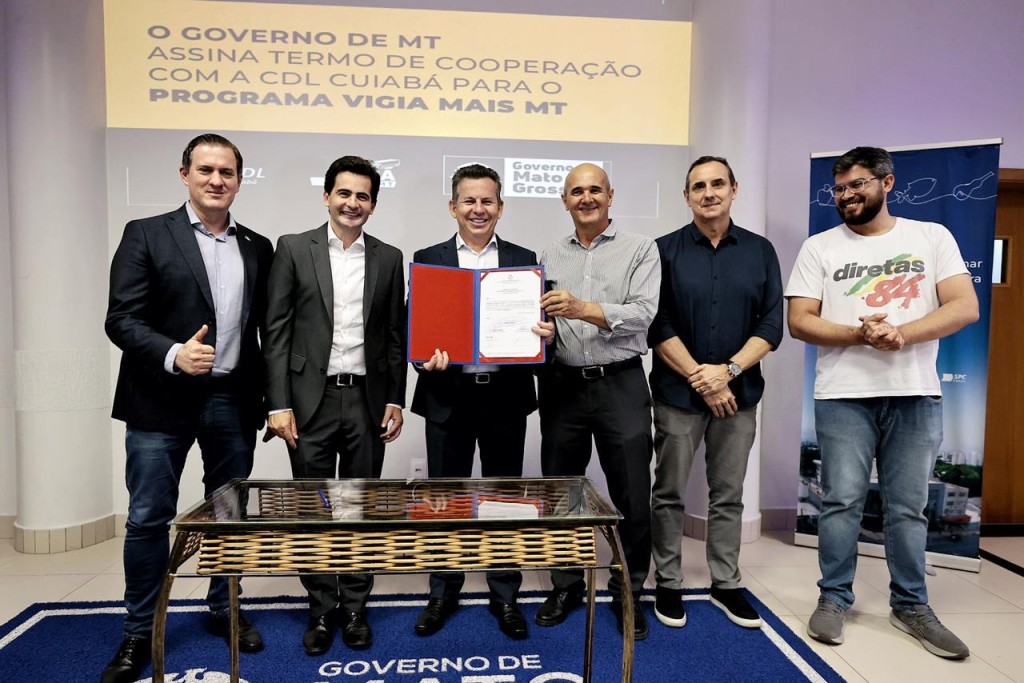 A parceria entre o Governo de Mato Grosso e a Câmara de Dirigentes Lojistas de Cuiabá (CDL), formalizada na noite desta quarta-feira (27.09), será um marco na transformação da segurança na Capital, conforme o presidente da Câmara de Dirigentes Lojistas de Cuiabá (CDL), Célio Fernandes, na assinatura do termo adesão ao programa Vigia Mais MT, com o governador Mauro Mendes.