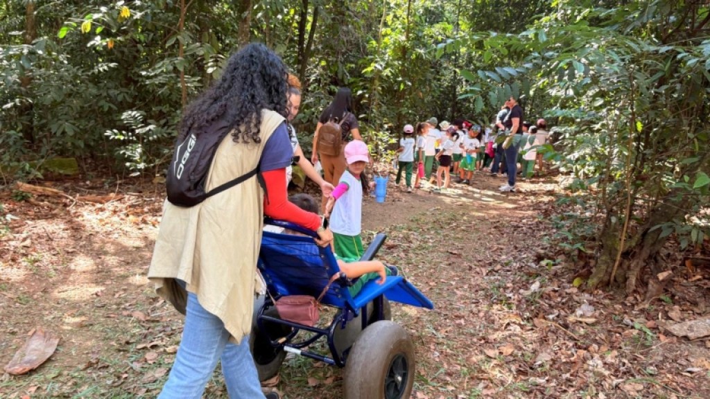 A cuidadora escolar, Lucélia Souza, que acompanha o aluno com deficiência e esteve presente durante a trilha, enfatizou o impacto da ação no processo de inclusão e desenvolvimento da criança. “Está sendo muito importante, pois é uma oportunidade de dar inclusão, dele estar passeando com os colegas no parque, ver a movimentação, a natureza e os animais. Ele tem cinco anos de idade e encontra bastante dificuldade na coordenação motora. Eu cuido dele, e está sendo muito importante essa inclusão. Ele está aqui hoje, tendo essa oportunidade de participar junto com todos os colegas”, disse.