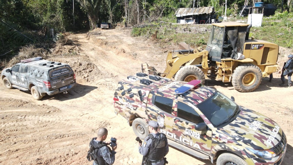 Conforme informações do boletim de ocorrência, o denunciante relatou que adquiriu a área há algumas semanas, mas, quando foi visitar a propriedade, identificou um grupo de homens e máquinas realizando a extração irregular de minério e madeiras na região. A vítima não informou de quem teria adquirido o imóvel.
