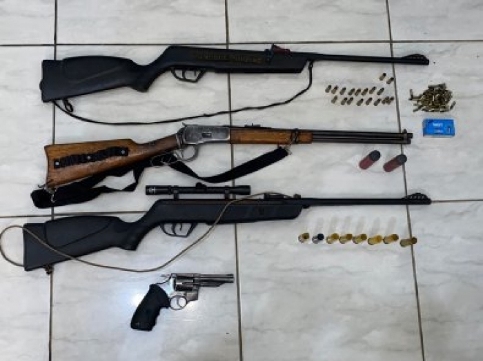 Contra o alvo da prisão foi cumprido também mandado de busca, que resultou na apreensão de quatro armas de fogo, duas delas de pressão, mas adaptadas, além de luneta, munições. As ordens judiciais foram executadas por equipes das Delegacias de Pontes e Lacerda e de Jauru.