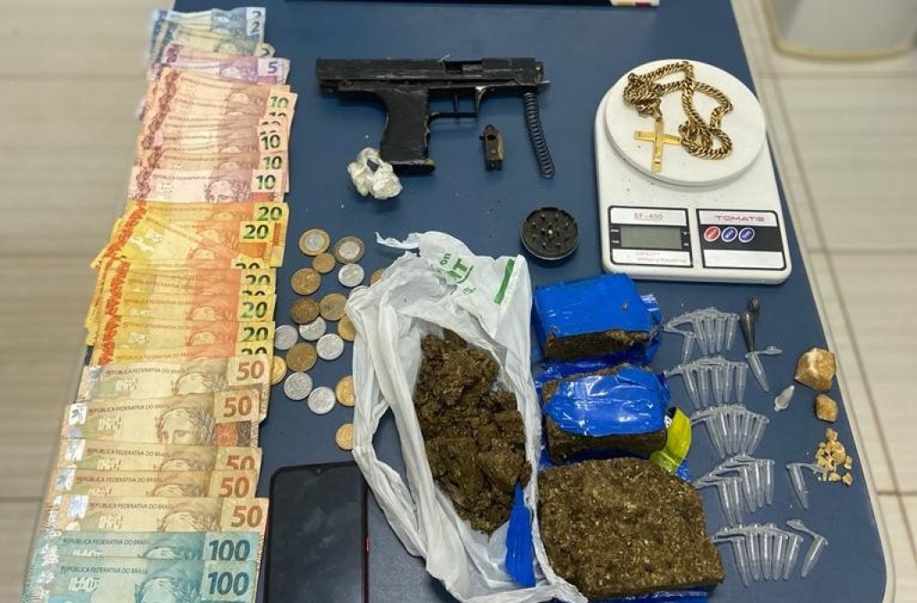 Em buscas na casa, os militares apreenderam ainda uma pistola de fabricação artesanal, uma balança de precisão, um aparelho celular, uma corrente de ouro e R$ 813,40 em espécie. O suspeito e todo material apreendido foram levados à delegacia para registro do boletim de ocorrência e demais providências cabíveis.