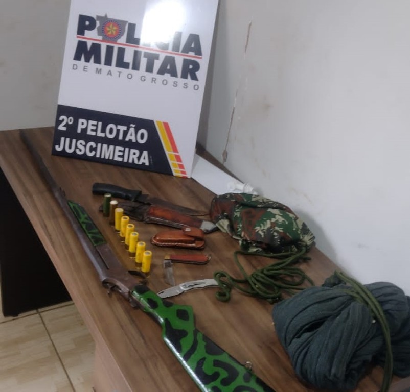 Policiais militares do 28º Batalhão prenderam, neste domingo (28.05), um homem suspeito por caça a animais silvestres, porte ilegal de arma de fogo, direção perigosa e dano, no município de Jaciara (147 km de Cuiabá).
