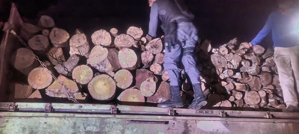 Em vistoria ao caminhão, os militares verificaram que se tratava de uma madeira da espécie Angico, tendo aproximadamente 21 metros cúbicos na carroceria. Também dentro do veículo, foram encontradas duas motosserras, utilizadas pelos suspeitos na extração da madeira.