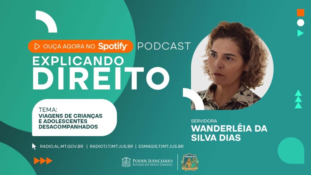Está no ar a nova edição do podcast “Explicando direito”, com uma entrevista da gestora da Coordenadoria da Infância e Juventude do Tribunal de Justiça de Mato Grosso, Wanderleia da Silva Dias, sobre autorização para crianças e adolescentes viajarem sozinhos.
