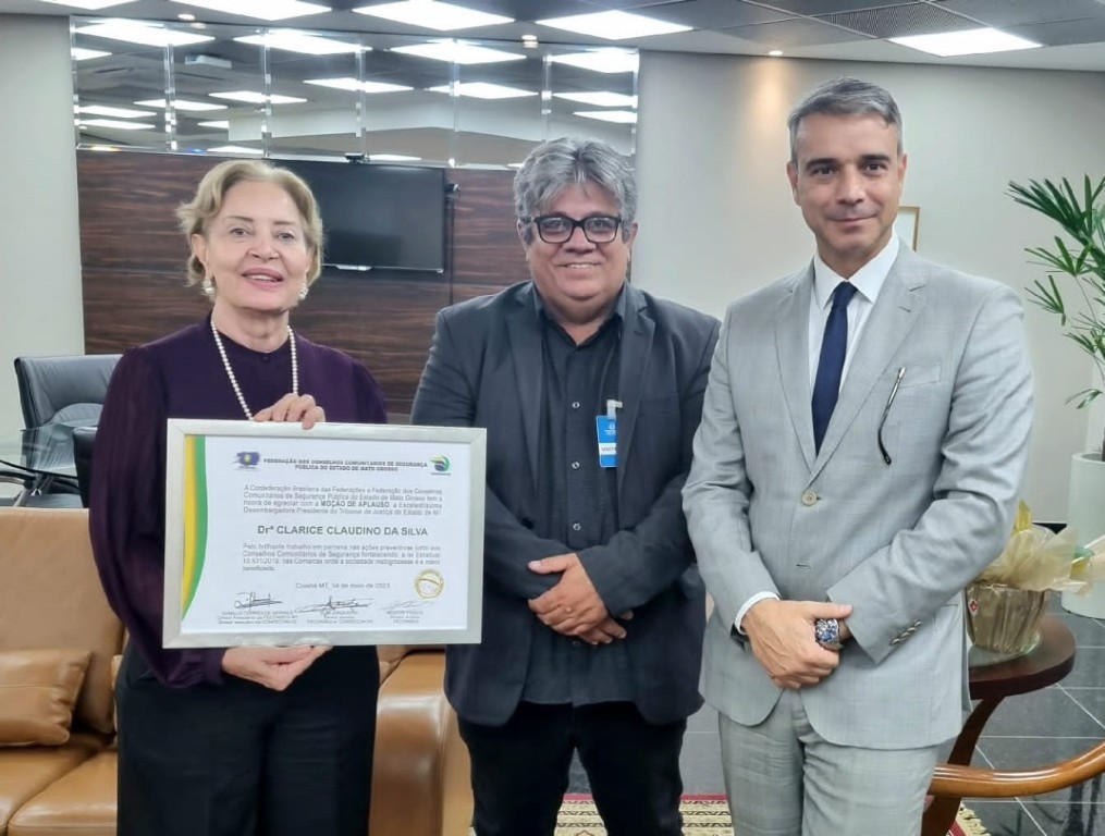 A presidente do Tribunal de Justiça de Mato Grosso, desembargadora Clarice Claudino da Silva, se reuniu com representantes da Federação dos Conselhos Comunitários de Segurança, para tratar das parcerias estabelecidas entre os Conselhos Municipais e a própria Feconseg/MT com a Justiça, o Ministério Público e as Forças de Segurança. A reunião foi realizada no último dia 4, na sede do TJMT.