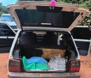 Com base nas informações, os policiais passaram a monitorar a região por alguns dias, conseguindo na terça-feira (25), identificar o veículo suspeito. Durante a ação, os policiais deram sinal de parada para o veículo, porém o condutor não obedeceu à ordem policial e saiu em alta velocidade, em uma estrada vicinal, momento em que abandonaram o veículo e fugiram para a mata.