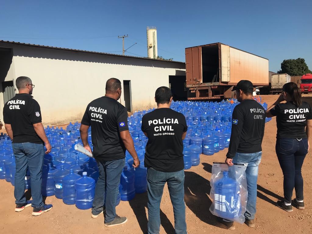 Mais de 1.345 garrafões retornáveis de água, a maioria deles vazios, foram apreendidos pela Polícia Civil, na manhã de quinta-feira (06.07), em uma operação conjunta deflagrada pela Delegacia Especializada de Defesa do Consumidor (Decon), 1ª Delegacia de Polícia de Várzea Grande e Delegacias de Jacira, Rosário Oeste e Chapada dos Guimarães.