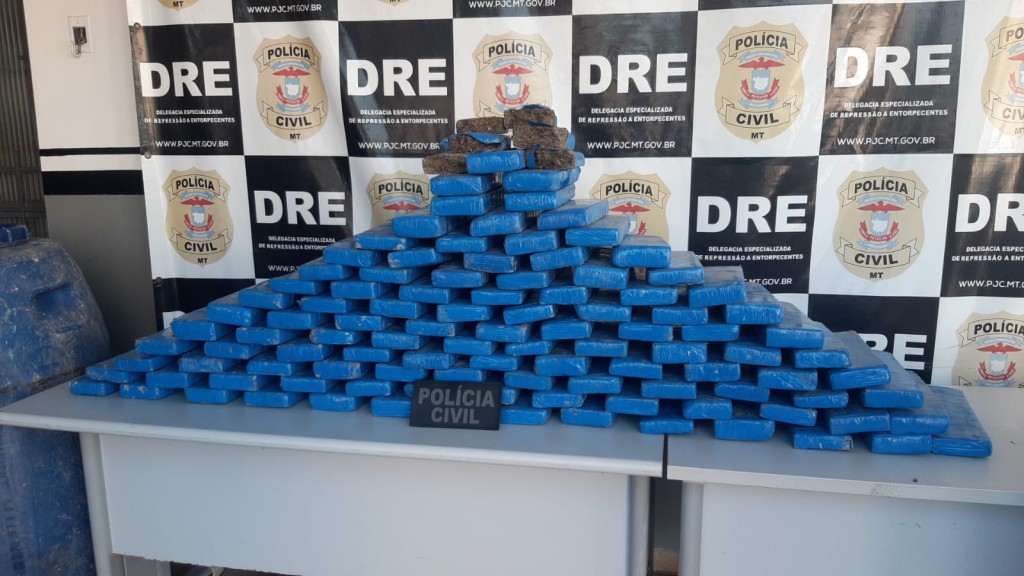 A Polícia Civil, em uma operação conjunta da Delegacia Especializada de Estelionato e Outras Fraudes de Cuiabá e Delegacia Especializada de Repressão a Entorpecentes (DRE), apreendeu 107 tabletes de maconha, na manhã desta quinta-feira (20.07), durante cumprimento de mandado de busca e apreensão no bairro Sol Nascente em Cuiabá.