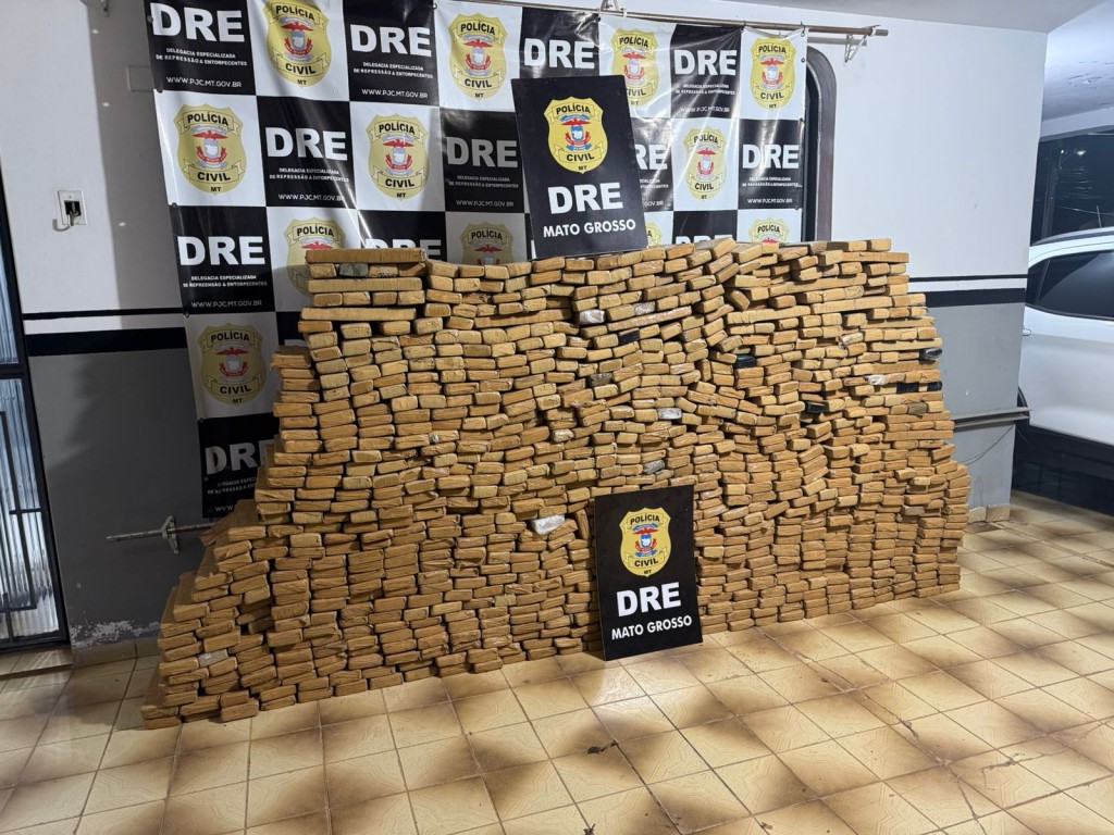 Cerca de 1,1 toneladas de maconha foram apreendidas pela Polícia Civil, no final da tarde desta segunda-feira (02.12), em uma residência em Várzea Grande. Um casal, ele de 22 e ela de 23 anos, foram presos em flagrante por tráfico de drogas.