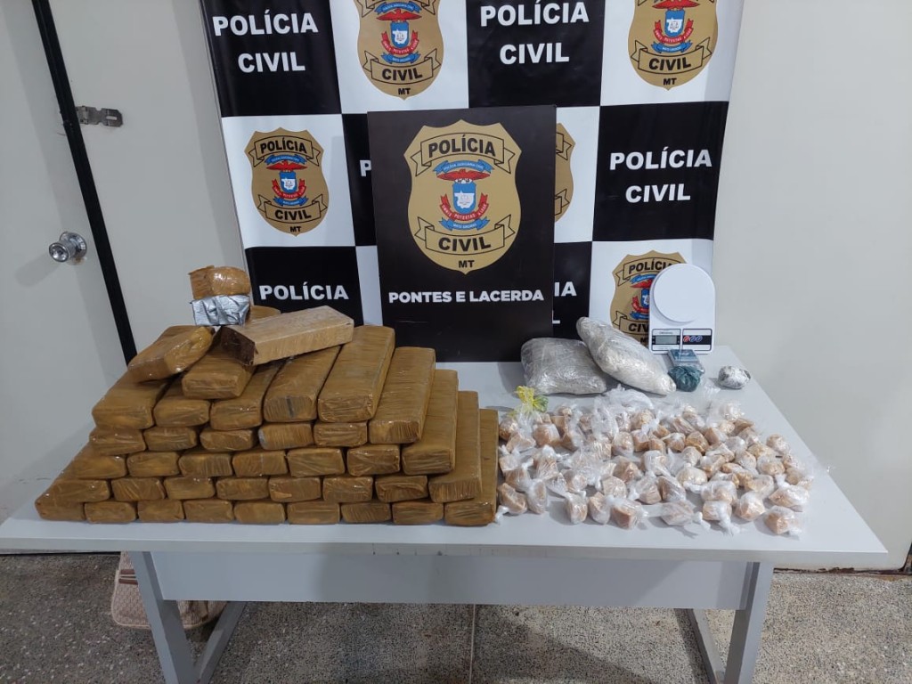 Um carregamento de entorpecentes, entre maconha e pasta base de cocaína, foi apreendido pela Polícia Civil, na tarde de sexta-feira (03.05), em uma residência utilizada para armazenamento de drogas na cidade de Pontes e Lacerda (442 km a oeste de Cuiabá). Um casal e um comparsa que estavam responsáveis pelo entorpecente foram autuados em flagrante por tráfico de drogas e associação para o tráfico.