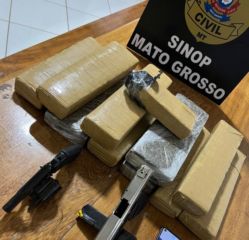 Investigadores da Delegacia de Roubos e Furtos (Derf) apreenderam, nesta segunda-feira (15.05), no bairro Jardim Itália, em Sinop, 10 quilos de entorpecente e duas armas de fogo que pertenceriam a integrantes de uma facção criminosa.
