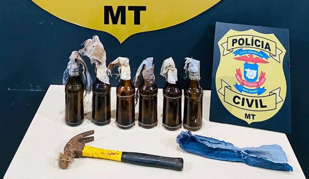 A Polícia Civil, por meio da Delegacia de Tangará da Serra, apreendeu na terça-feira (03.10), garrafas de coquetel molotov que seriam utilizados para realizar novos ataques no município. Os ataques que tiveram como alvo a Prefeitura Municipal de Tangará da Serra ocorreram no dia 28 de setembro, ocasião em que três veículos foram incendiados.
