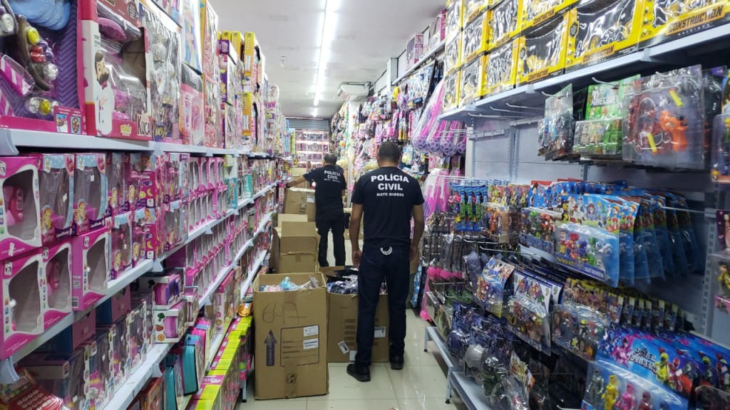 Os trabalhos iniciaram de forma simultânea, nas primeiras horas da manhã, em quatro grandes lojas do Centro de Cuiabá, resultando na apreensão de milhares de brinquedos contrafeitos de personagens com direitos autorais licenciados por empresas como, por exemplo, Marvel, Nintendo e Sega.