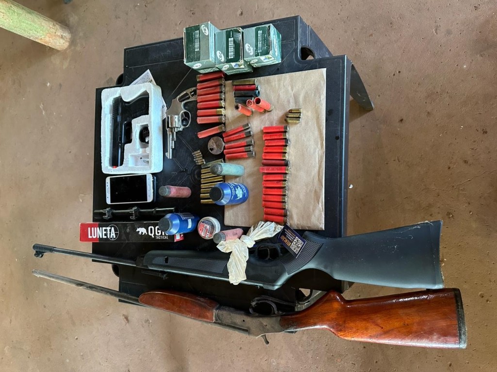 Na residência de um dos alvos da operação no município de São José do Xingu, foram apreendidas duas armas de fogo permitido, além de diversas munições e duas armas de pressão. Todo material foi apreendido e o suspeito conduzido à delegacia, onde após ser interrogado, foi autuado em flagrante por posse ilegal de arma de fogo.