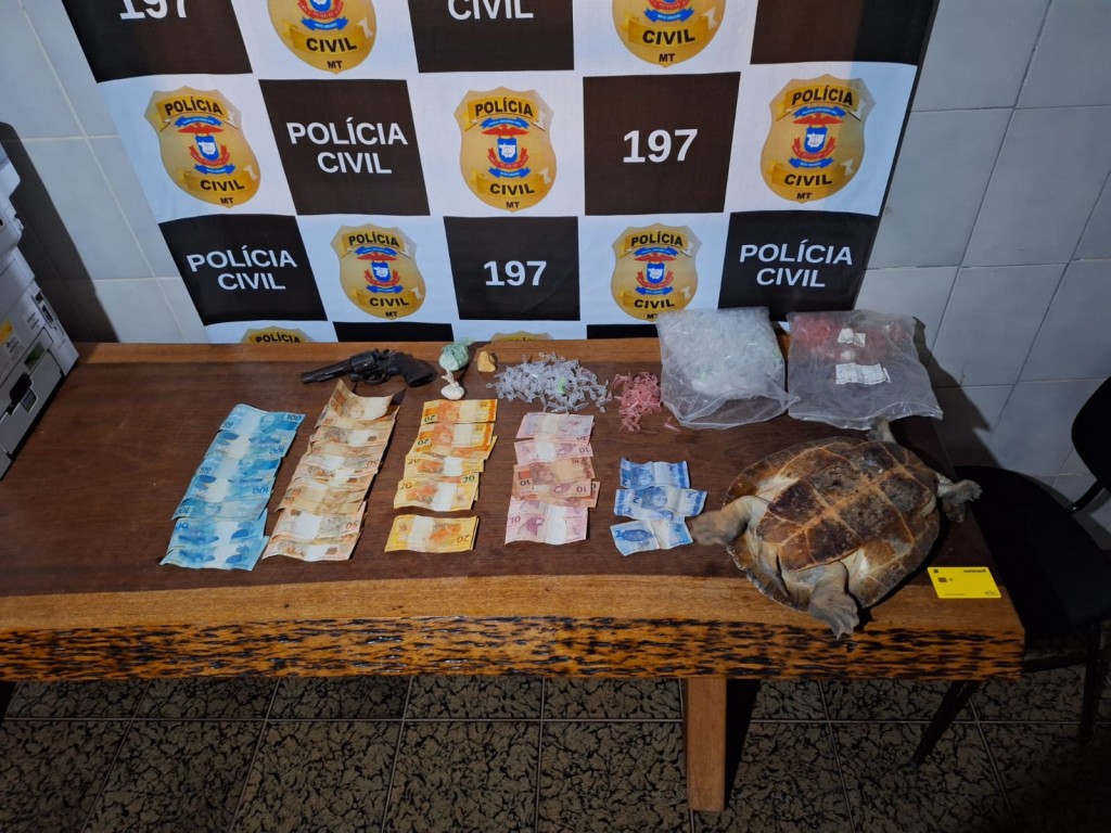 Durante as buscas em uma das residências, foram encontrados materiais utilizados para a separação de drogas, uma arma de fogo calibre .38 com a numeração raspada, porções de entorpecentes e um quelônio. O suspeito, associado ao tráfico de drogas e à associação para o tráfico, foi detido no local.