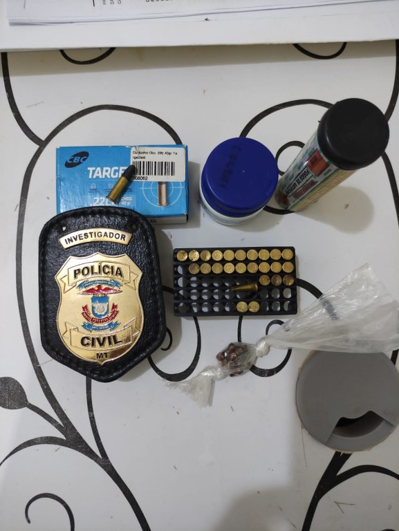 De posse do mandado, os policiais civis foram até o endereço do pai, onde também funcionava um bar na frente do imóvel, e localizaram 23 munições ilegais.