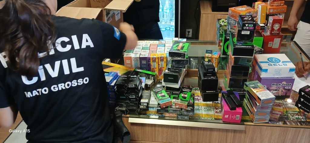 Durante as investigações da Polícia Civil, foram identificadas cinco lojas em Cuiabá e uma Várzea Grande que estavam comercializando vapers, pods e outros tipos de dispositivos eletrônicos, além de essências e de acessórios para cigarros eletrônicos.