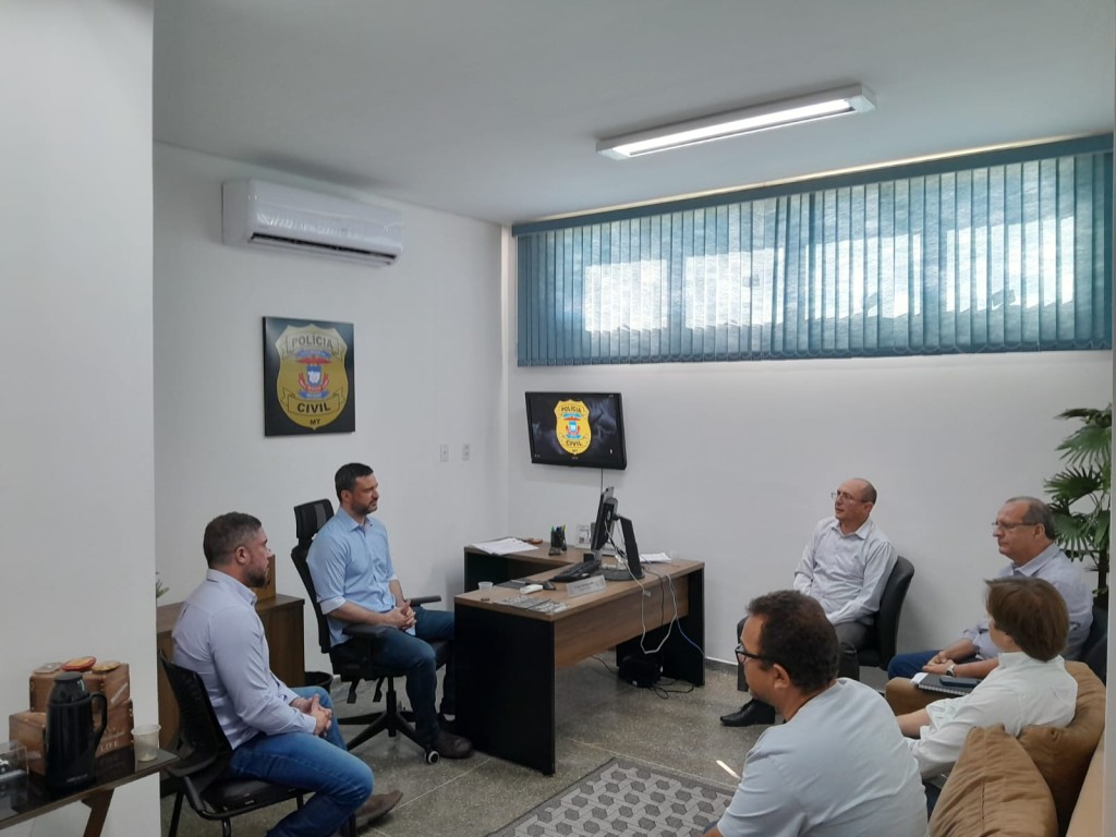Na reunião, realizada na Delegacia de Veículos, o superintendente de Fiscalização (Sufis), José Carlos Bezerra Lima, o assessor, Alexandre Monea e o representante da Coordenadoria de Fiscalização de Trânsito, João Bosco Griggi Borralho, foram recebidos pelos quatro delegados da unidade, Diego Alex Martimiano da Silva, Edson Arthur Teixeira, Maurício Maciel Pereira Júnior e André Eduardo Ribeiro.