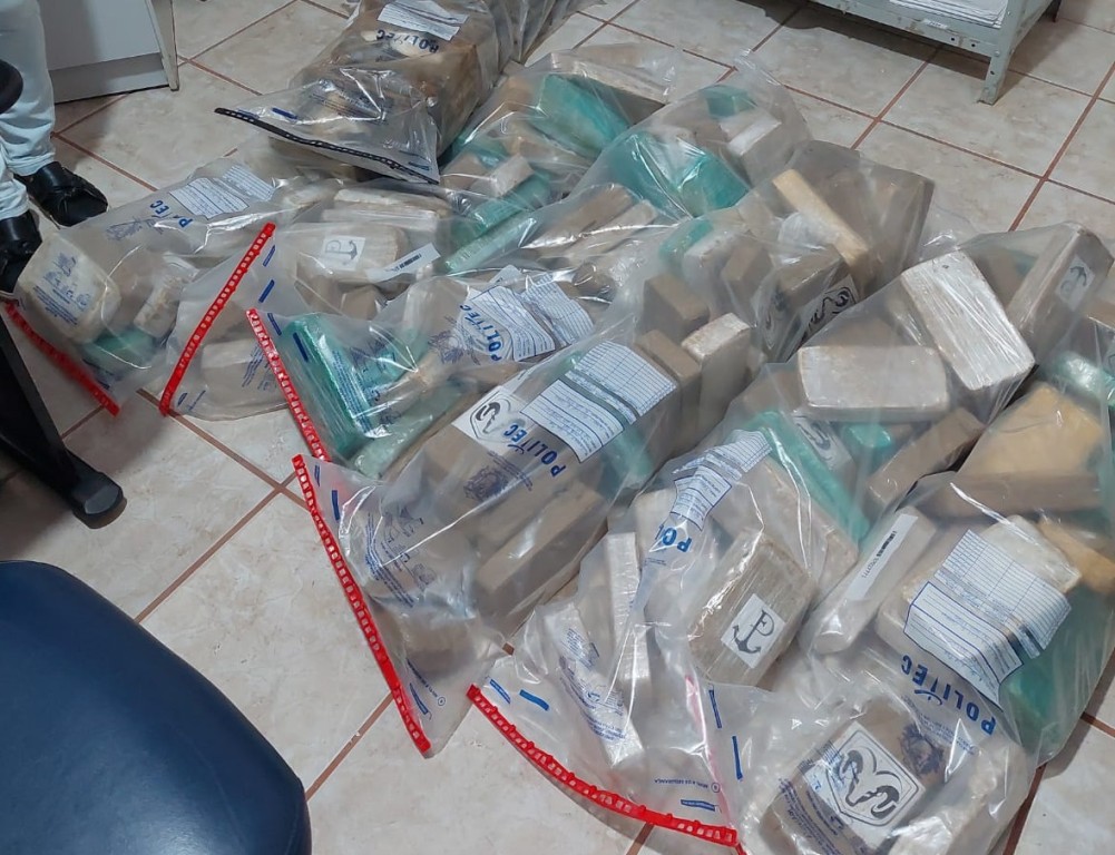A grande quantidade de droga foi apreendida na terça-feira (21), durante a abordagem de um veículo, ocasião em que o condutor empreendeu fuga e colidiu contra o muro. Na carroceria do veículo, foram encontrados aproximadamente 153,55 ;kg de cocaína, distribuídos em 150 tabletes, que estavam armazenados em sacos pretos. ;