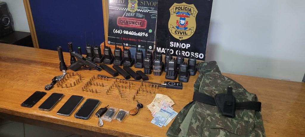 A ação deflagrada com apoio da Delegacia Especializada de Roubos e Furtos (Derf) de Sinop, resultou na apreensão de um arsenal, contendo muitas munições de diferentes calibres, arma de fogo, aparelho utilizado para bloquear rastreadores, celulares, fertilizantes, entre outros produtos.