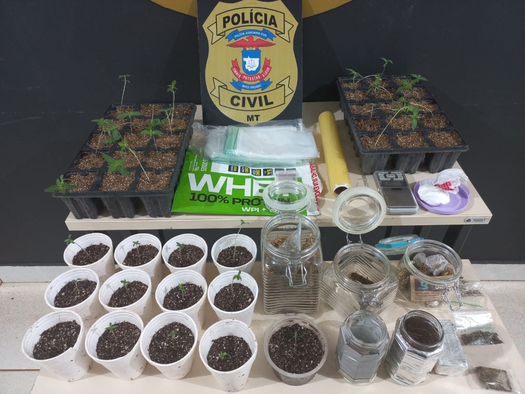Questionado se havia algum objeto ilícito em sua residência, o suspeito revelou que tinha entorpecentes que estava comercializando. No local, os policiais encontraram uma estufa instalada para o cultivo de diversos vasos contendo mudas de maconha. Além de porções grandes de cocaína, maconha, balança de precisão, plástico filme e embalagens de tamanhos variados.