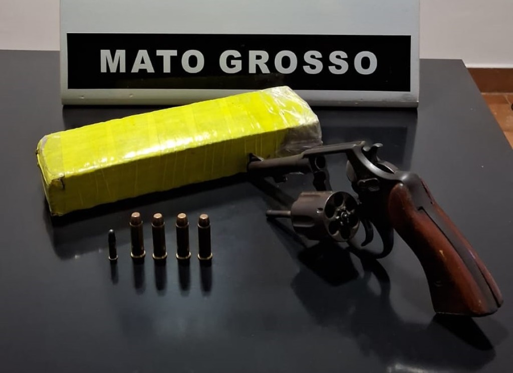 No local, os policiais aprenderam um revólver calibre 38, quatro munições do mesmo calibre e uma munição calibre 22 e um tabletes de maconha.