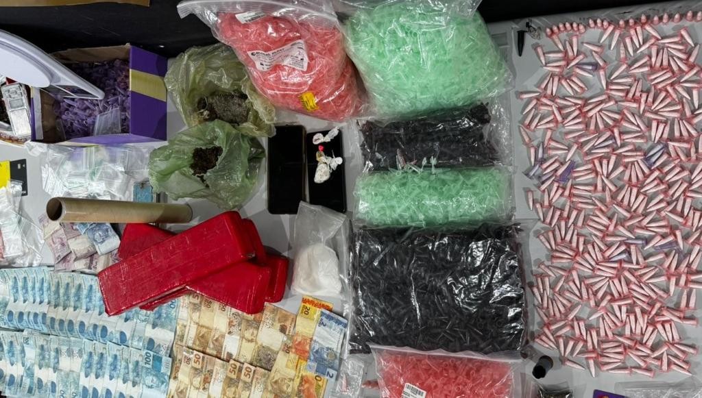 A ação resultou na apreensão de entorpecentes, entre maconha e cocaína, e de diversos apetrechos relacionados ao tráfico de drogas. Os suspeitos foram autuados em flagrante pelos crimes de tráfico de drogas e associação para o tráfico.