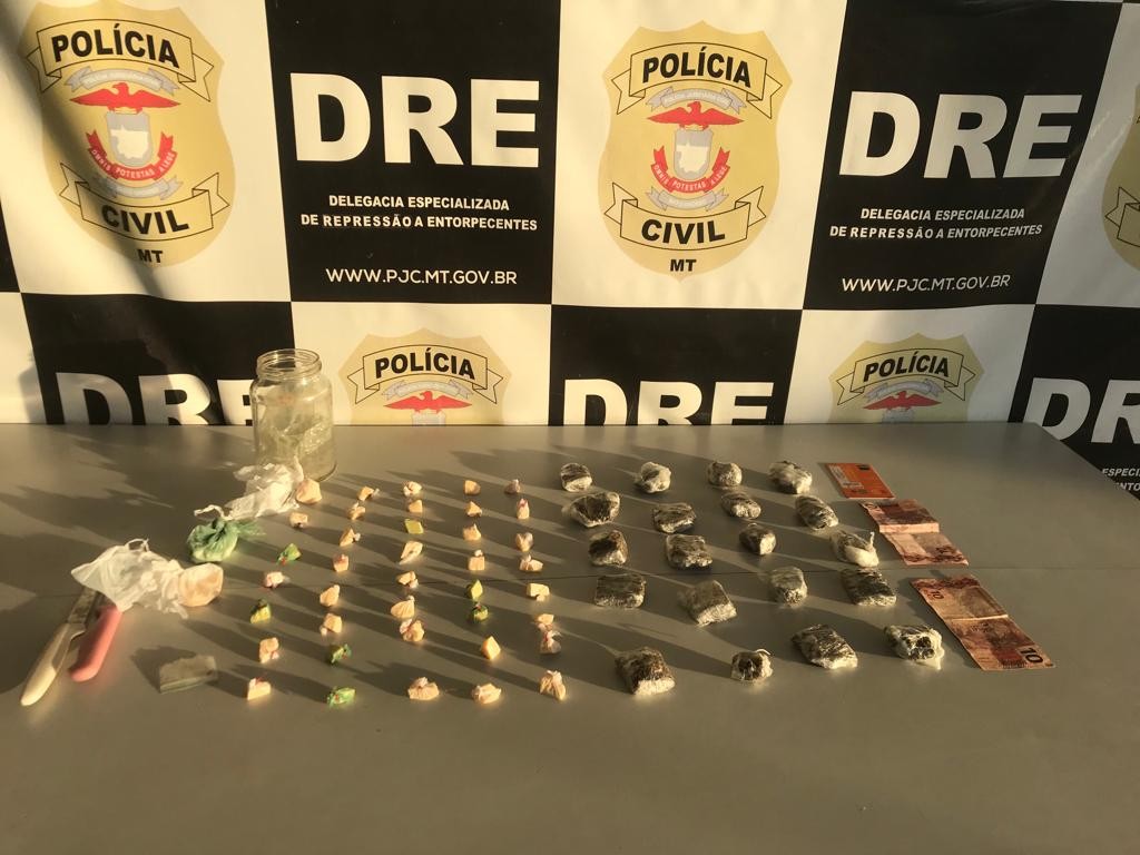 Todo material ilícito foi apreendido e o suspeito conduzido à DRE, onde após ser interrogado foi autuado em flagrante por tráfico de drogas. O usuário também foi conduzido à delegacia, onde assinou um Termo Circunstanciado de Ocorrência por uso de drogas.
