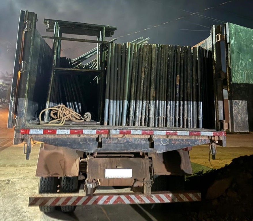 Após a comunicação dos fatos, os policiais da Derf-VG iniciaram as diligências, conseguindo identificar e realizar a abordagem do motorista do caminhão. Questionado, o suspeito confessou que fez o transporte dos andaimes e de outros objetos subtraídos da obra.