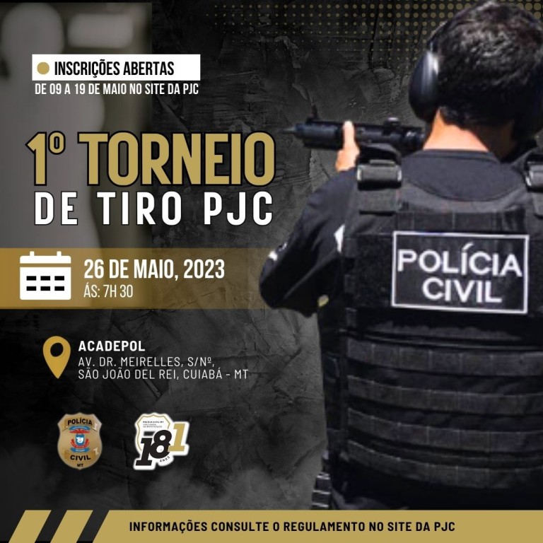Aberto a todos os policiais civis interessados, o evento esportivo ocorrerá no dia 26 de maio, a partir das 7h30, no estande de tiro da Academia de Polícia (Acadepol), em Cuiabá.