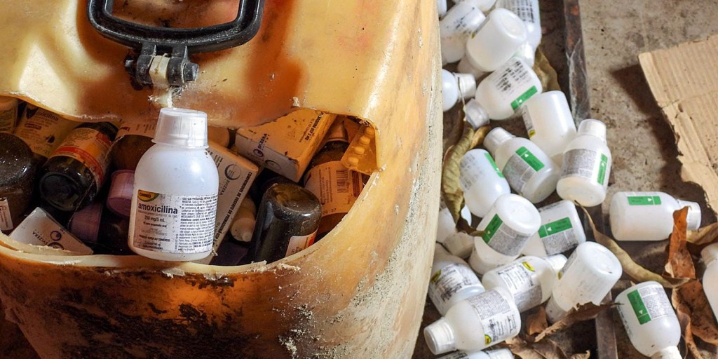 Em imagens, é possível ver frascos e caixas de remédios de diversos tipos e laboratórios, acondicionados em sacos plásticos e caixas maiores. Há, entre as substâncias, o antibiótico amoxilina; cloridrato de lidocaína, um injetável que serve para anestesiar regiões do corpo, e nistatina, medicamento utilizado no tratamento de candidíase. Alguns frascos estavam estufados e quase completamente cobertos de sujeira.