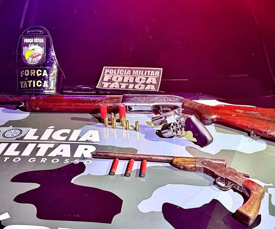 Com a quadrilha, os policiais militares apreenderam uma espingarda calibre 12, uma garrucha calibre 36 e um revólver calibre 38, além de onze munições.