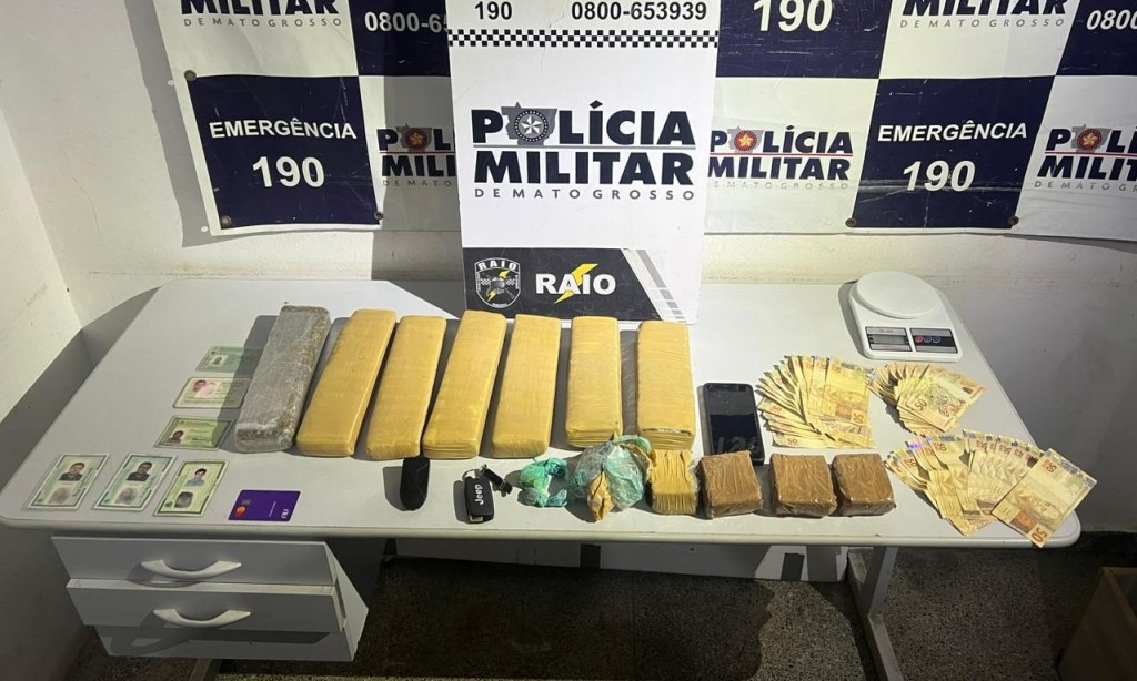 Policiais militares do Rondas e Ações Intensivas e Ostensivas (RAIO) apreenderam, na madrugada desta quarta-feira (03.05), sete tabletes de maconha e outras cinco porções do mesmo entorpecentes e prenderam um homem por tráfico de drogas e falsidade ideológica, no bairro Nossa Senhora da Aparecida, em Cuiabá.