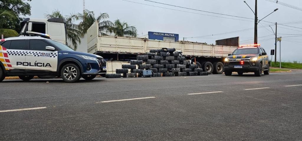 A guarnição policial foi acionada pela PRF para prestar apoio em abordagem de um caminhão trator Volvo, que trafegava com um semi-reboque, vindo de região de fronteira e com suspeita de transportar entorpecentes. A ação ocorreu por volta das 4h30 da manhã, durante fiscalização conjunta das forças de segurança.