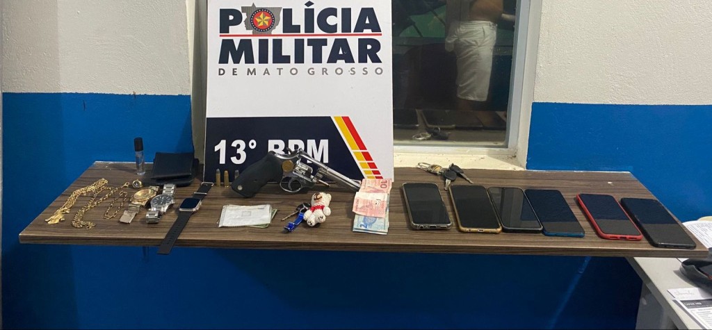 De imediato, todos os quatro suspeitos foram abordados e rendidos. Em procedimento de revista pessoal, a equipe localizou uma arma de fogo calibre .38 com três munições, em posse de um dos suspeitos. Os criminosos ainda tentaram se desfazer de celulares, mas o material também foi apreendido pela PM.