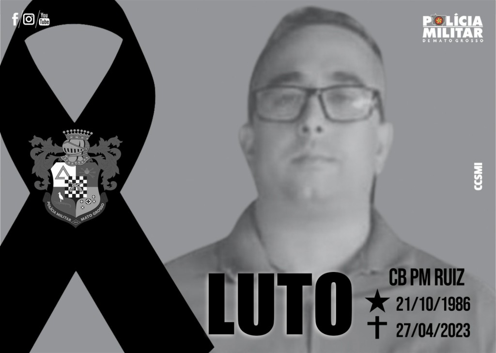 É com pesar, que a Polícia Militar de Mato Grosso informa o falecimento do cabo Thiago de Souza Ruiz, de 36 anos. O policial militar foi vítima de um homicídio e não resistiu aos ferimentos causados por arma de fogo, na madrugada desta quinta-feira (27.04), em Cuiabá.