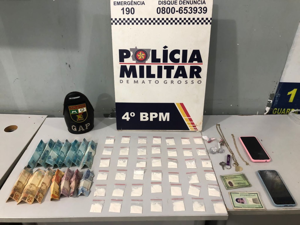 Policiais militares do 4º Batalhão prenderam em flagrante um homem de 49 anos e uma mulher de 24 anos por tráfico ilícito de drogas, na noite deste sábado (24.06), em Várzea Grande. Na ação, foram apreendidas porções de substâncias análogas à cocaína e maconha.