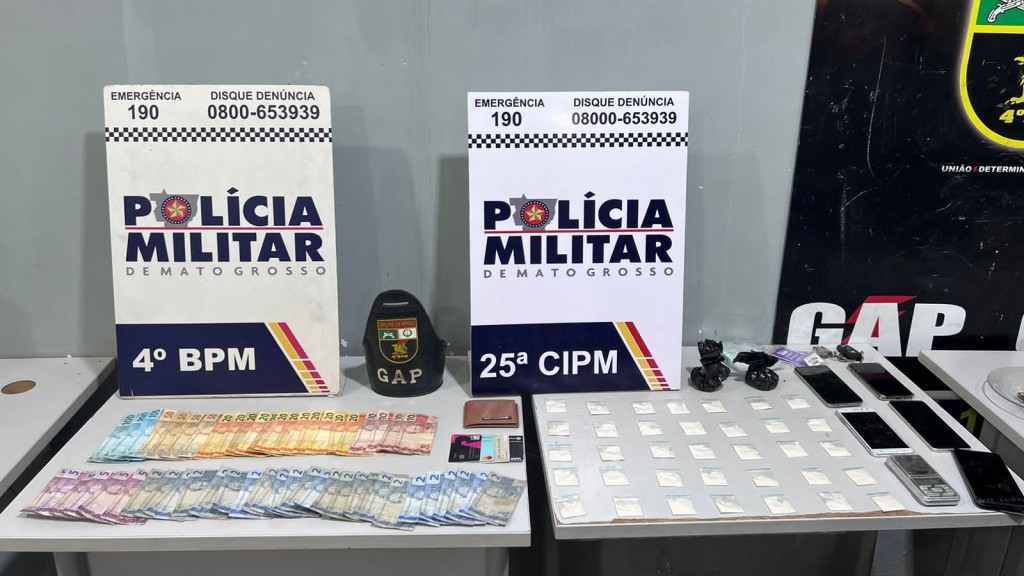 Aos policiais, o homem confessou que seria proprietário de uma distribuidora de bebidas no bairro Marajoara e que lá haveria mais drogas prontas para revenda, bem como na sua residência no bairro Paiaguás. Lá, sua namorada seria responsável. Os policiais do GAP e da 25ª CIA saíram em diligências nos locais informados. No ponto comercial, foram apreendidos 20 porções de cocaína e R$ 200.