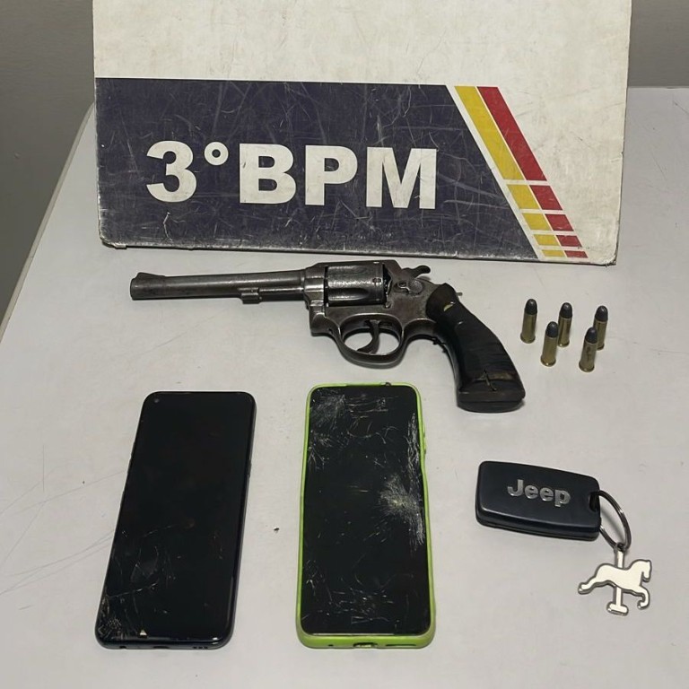 Após breve acompanhamento, os militares conseguiram interceptar o veículo e os suspeitos se renderam, saindo do carro com as mãos na cabeça. Dentro do carro, os policiais também encontraram um revólver calibre .38.