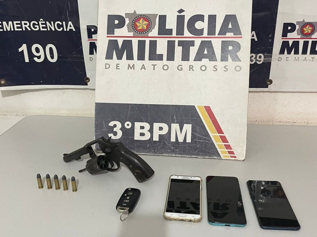 Equipes policiais do 1º Comando Regional prenderam dois homens, de 18 e 22 anos, por roubo e porte ilegal de arma, no final da tarde desta quarta-feira (12.07), em Cuiabá. Na ação, uma arma de fogo foi apreendida com os suspeitos e uma caminhonete foi recuperada.