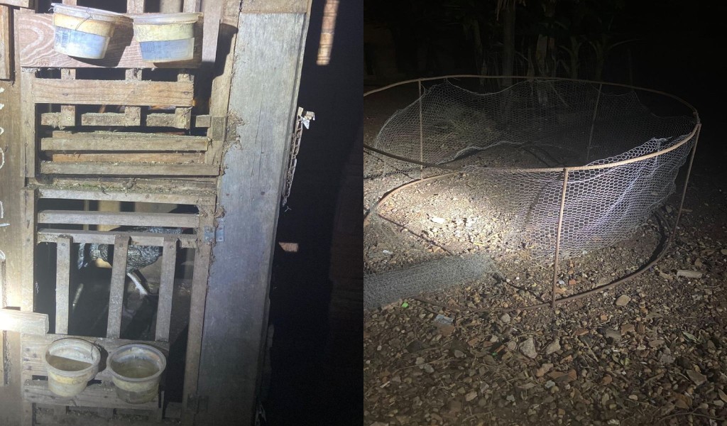 Ainda nas buscas pela casa e na apuração da denúncia anônima, a equipe do GAP encontrou no quintal cerca de 10 galos confinados em gaiolas separadas. No quintal, os militares também encontraram cercados semelhantes aos utilizados nas rinhas e materiais comumente utilizados nesse tipo de crime.