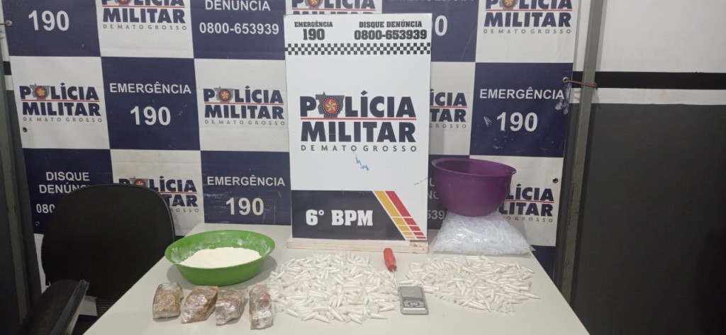 Uma mulher de 30 anos foi presa em flagrante pela Polícia Militar, por tráfico ilícito de drogas, na noite desta terça-feira (02.07), em Cáceres. Com a suspeita, a PM apreendeu 484 porções de substância análoga a cocaína e quatro pedras de pasta base.