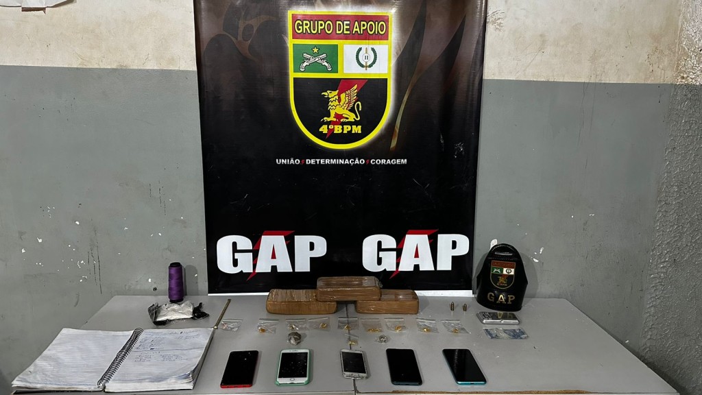 Os militares se deslocaram até o endereço indicado pelos suspeitos e realizaram buscas, onde foram encontrados mais dois tabletes e outras porções de pasta base de cocaína.
