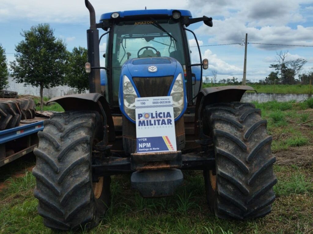 Na sequência, os policiais militares montaram barreiras e encontraram um caminhão prancha transportando um trator com as mesmas características informadas. Os suspeitos foram abordados e, questionados, informaram terem sido contratados para transportar o trator pelo valor de R$ 3 mil.