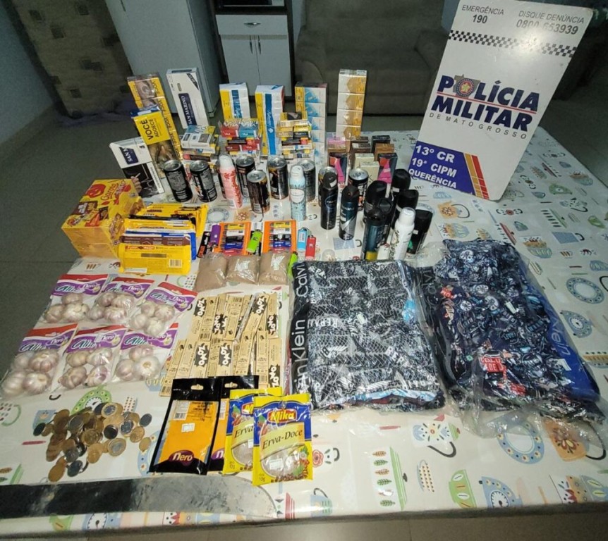 Policiais militares da 19ª Companhia Independente prenderam, na madrugada desta terça-feira (28.02), dois homens, de 19 e 24 anos, suspeitos de furtarem mais de 140 produtos de um supermercado na região central de Querência (760 km de Cuiabá).