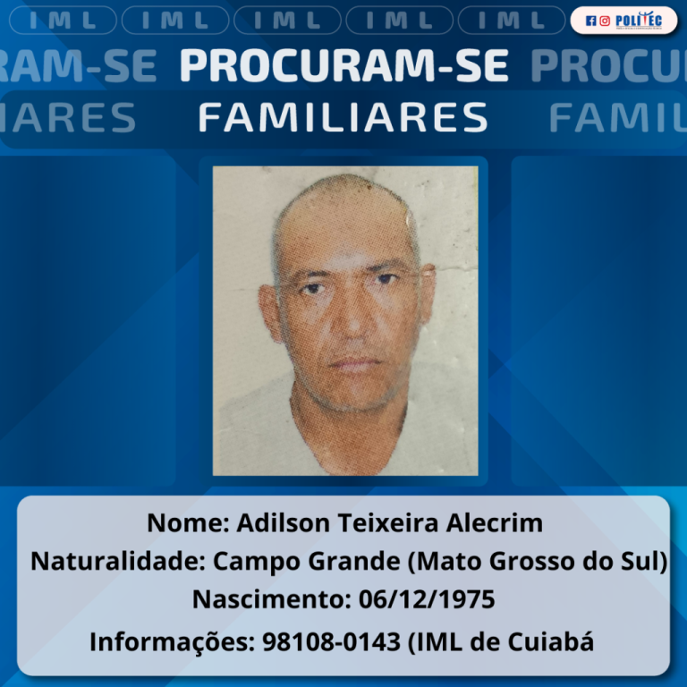 O primeiro foi identificado como Adilson Teixeira Alecrim, de 49 anos. É natural de Campo Grande (Mato Grosso do Sul) e filho de Filadelfo Teixeira Alecrim e Alair Dias de Souza. Ele foi vítima de acidente de trânsito no dia 18 de dezembro do ano passado, na Rodovia Hélder Cândia, mais conhecida como Estrada da Guia, em Cuiabá.