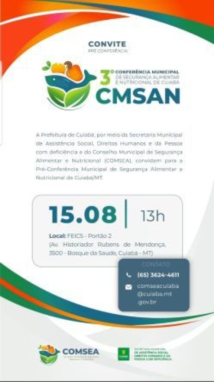 “Acreditamos firmemente que a participação ativa da comunidade é de extrema importância para o êxito dessa conferência e para a construção de políticas que tenham um impacto positivo na vida de todos os cidadãos. Contamos com a presença e a dedicação de cada indivíduo na busca por uma alimentação mais saudável e acessível para todos”, concluiu.