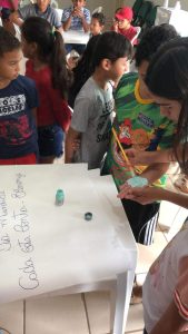 Além ds atividades lúdicas, também foram realizadas experiências científicas com a água, com o objetivo de estimular o conhecimento, o trabalho em equipe e relações interpessoais.