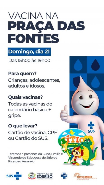 Para animar e garantir que o choro e o medo não sejam os inimigos dos pequenos na hora da picadinha, a Secretaria conta com o apoio de uma equipe pra lá de especial: a turma do Pica-pau Amarelo.