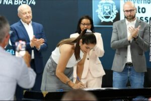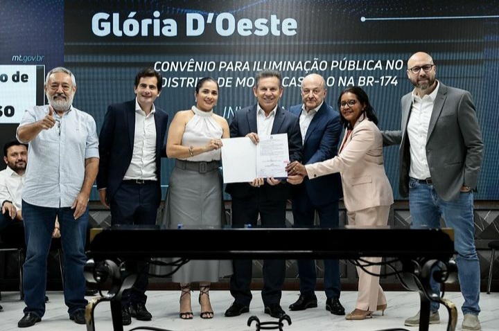 No último dia 25 de abril, a prefeita Gheysa Borgato, do município de Glória D’Oeste, protagonizou um momento histórico ao assinar um importante convênio para a instalação de iluminação pública no Distrito de Monte Castelo, localizado às margens da BR 174. A cerimônia ocorreu no Palácio Paiaguás, destacando o compromisso da gestão municipal em promover melhorias na infraestrutura da região.